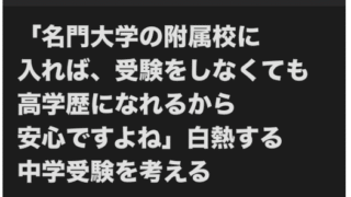 学校選びの基準として、附属校があるが、「そこに入れれば親はひと安心…」とはいかないのか?自分の人生なのだから、自身の力で学べ、というのが大前提なのだろう。しかし、親としては、「附属校に入れた」ということで、大学までは安心だと思いたいのではな...